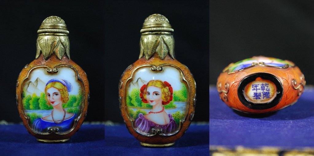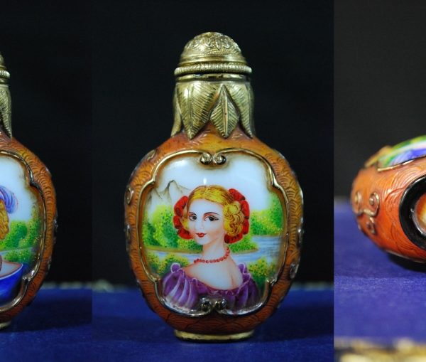 Home / Porcelain / Snuff Bottle of Portrait Foreigners Snuff Bottle of Portrait Foreigners Category: Porcelain Tags: famille rose, imperial, porcelain, qianlong, snuff A beautiful Imperial Famille Rose snuff bottle with painting of foreigners on both sides, having their portrait painted. Qianlong mark and period Height 7.5 cm Related products Gourd With Dragon And Phoenix Read more Tile Porcelain of Old Sage Read more Flower Bowl With Burning Marks Read more Lions and Chrysanthemum Vase Read more