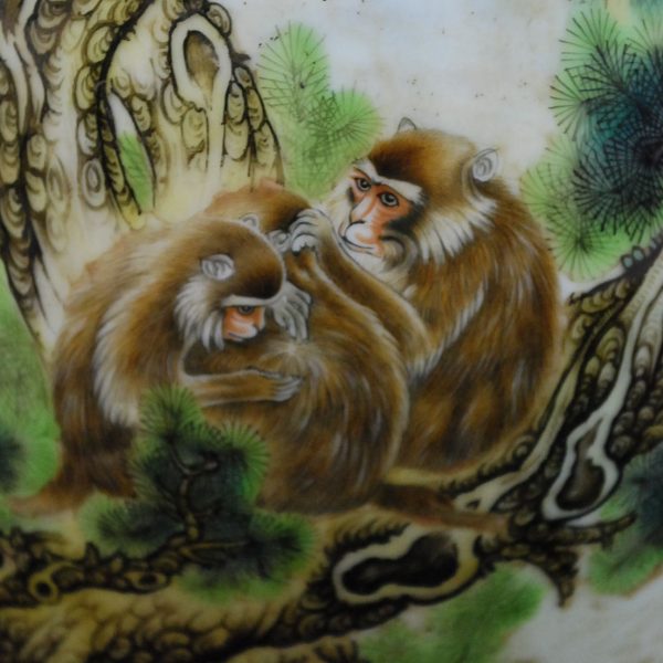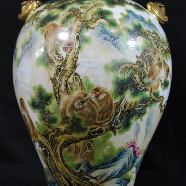 Home / Porcelain / Monkey Meiping Vase Monkey Meiping Vase Category: Porcelain Tags: famille rose, imperial, monkey, pine tree, porcelain, yongzheng A magnificent Imperial Famille Rose Meiping vase with two gold bat as ears, depicting monkeys hanging around on a pine tree or grooming one another. Yongzheng mark and period Height 38 cm Related products Yellow-Ground Flower Jar Read more Revolving Bowl Peaches And Bats Read more Tile Porcelain of Fishes Read more Black Flower Ewer Read more